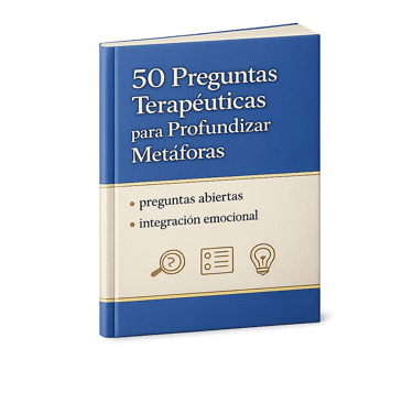 Un conjunto de preguntas abiertas y estratégicamente diseñadas para acompañar el uso de metáforas terapéuticas en sesión y facilitar integración emocional, reflexión profunda e insight consciente.