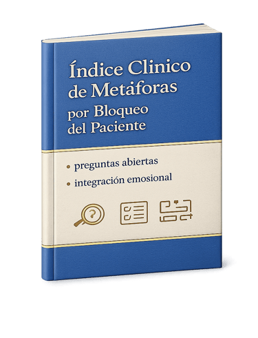 Un índice organizado por bloqueos emocionales, estados internos y dificultades frecuentes, diseñado para ayudarte a encontrar rápidamente la metáfora más adecuada según el momento clínico del paciente.